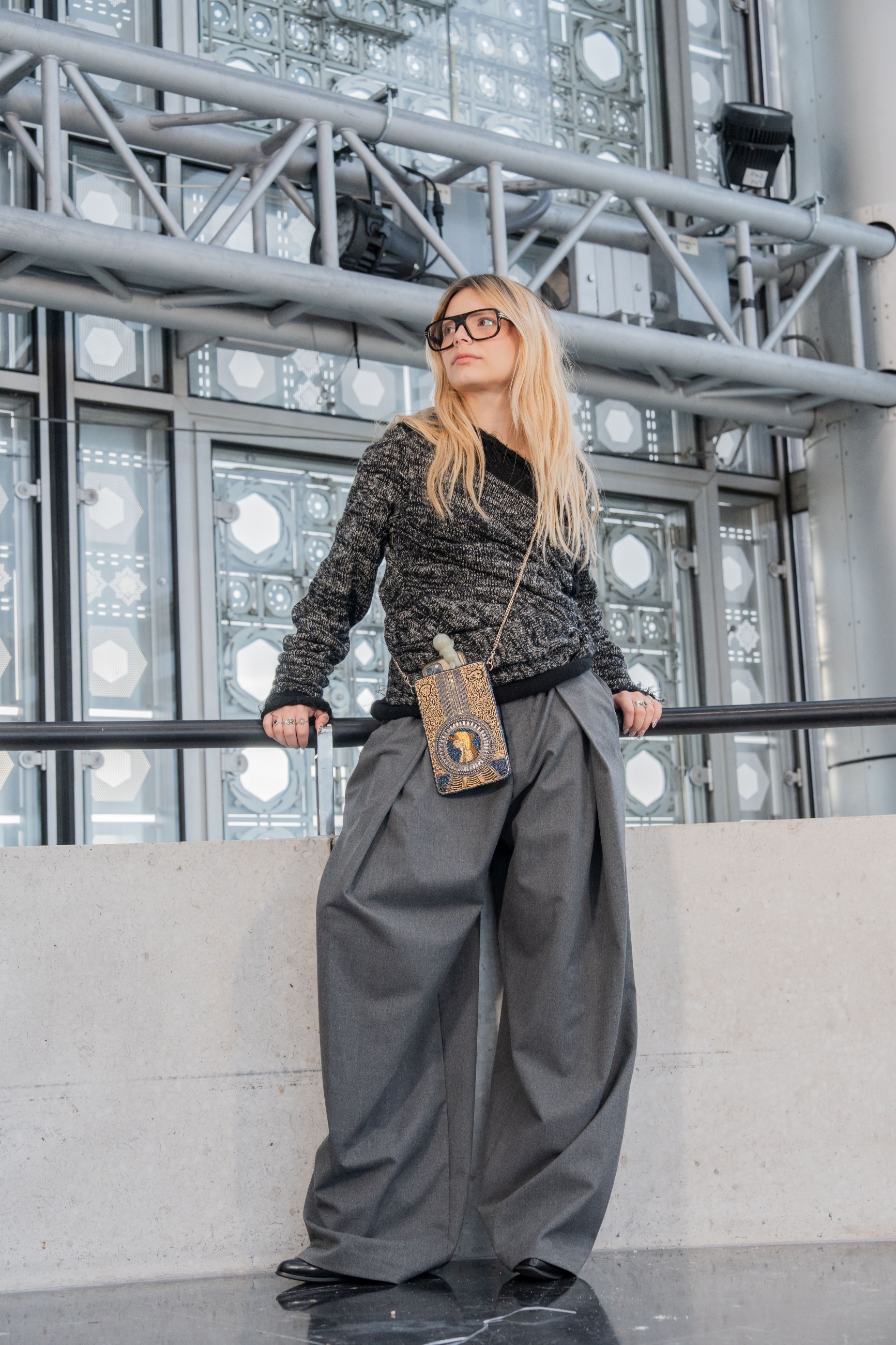 Sophie Cano signe une collection inspirée de la figure envoûtante de Cléopâtre. Cette pochette pour téléphone brodée et perlée à la main mêle élégance contemporaine et artisanat d’exception. Motifs dorés, perles scintillantes et détails précieux évoquent la richesse des trésors antiques et subliment cet accessoire unique, pensé comme un bijou. COMPOSITION : Coton sergé, perles japonaises et perles métalliques. * Ouverture par fermeture éclair