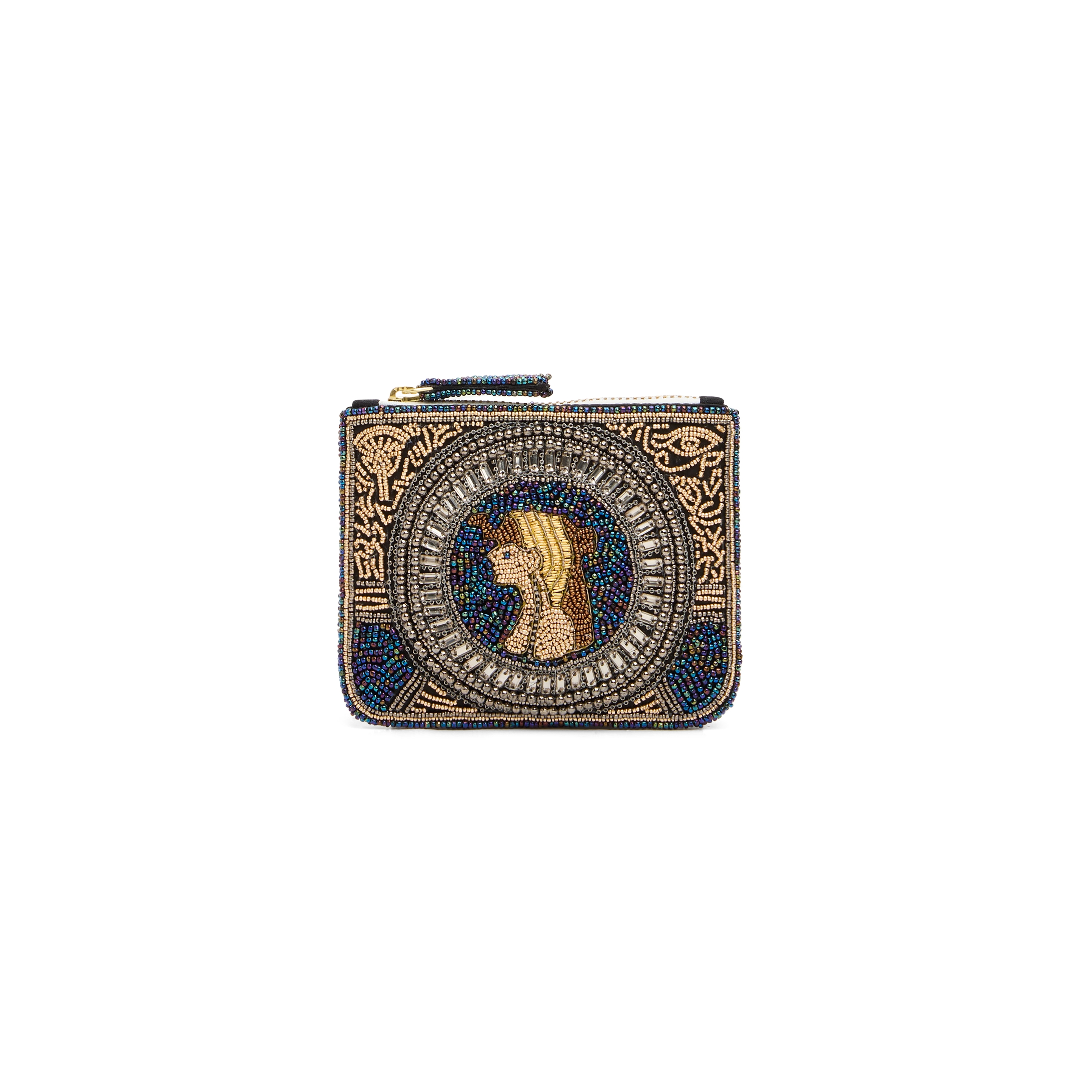 Sophie Cano signe une collection inspirée de la figure envoûtante de Cléopâtre. Ce porte-monnaie brodé et perlé à la main mêle élégance contemporaine et artisanat d’exception. Motifs dorés, perles scintillantes et détails précieux évoquent la richesse des trésors antiques et subliment cet accessoire unique, pensé comme un bijou. COMPOSITION : Coton sergé, perles japonaises et perles métalliques * Ouverture par fermeture éclair